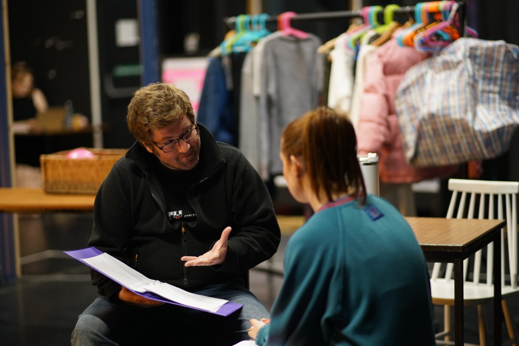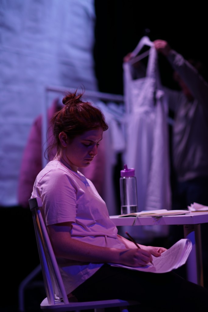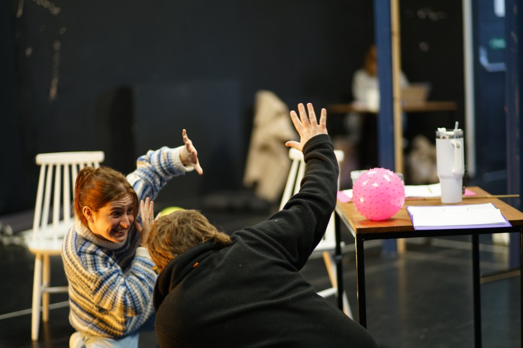 As devising is at the heart of my practice, I hold a collaborative space and try to be really responsive to the creative influence of the room – Clare and Gerry were extremely generous with their creative contributions, and Adi and Izzy brought brilliant ideas to the room. This has been an affirming experience, solidifying the way that I work and the benefits of it. In particular, spending the first week in play and discovery meant that we landed in some great depth early on which was easy to apply to a blocking process (rather than trying to find insight after the piece has been blocked).