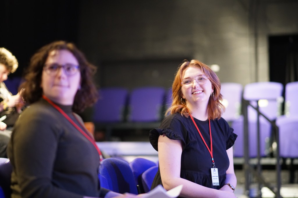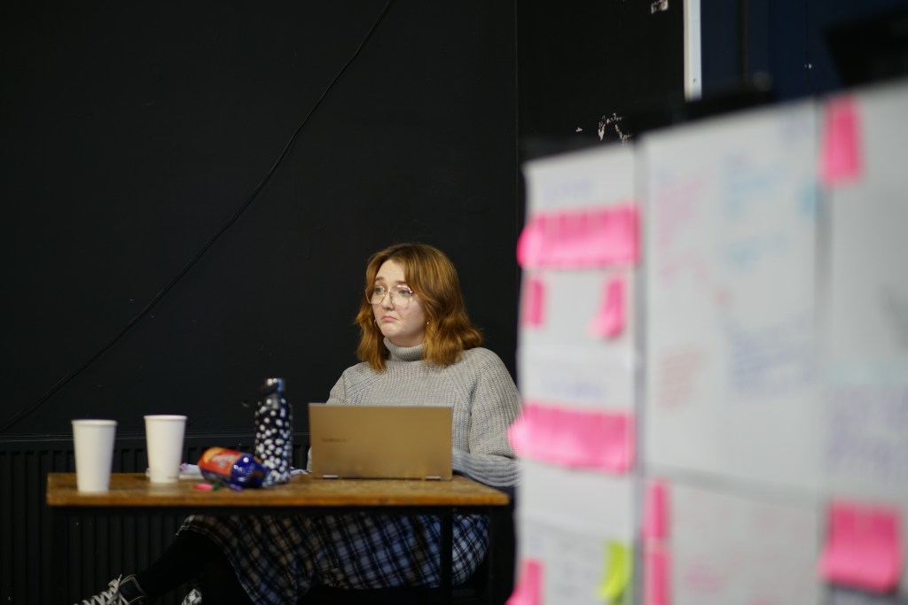 By the time we reached production this year (2023), having worked on other Feminist performance developments, I was feeling extremely clear about what the play was about. What we (the design team and I) were excited about going in, was the layers of narrative; we had. a lot of fun decided how to situate the audience in different layers to remind them that this was a performance and they should reflect on their own circumstances. Adi and Izzy did amazing work bringing the piece to life – it was breathtaking seeing the design come together during tech.